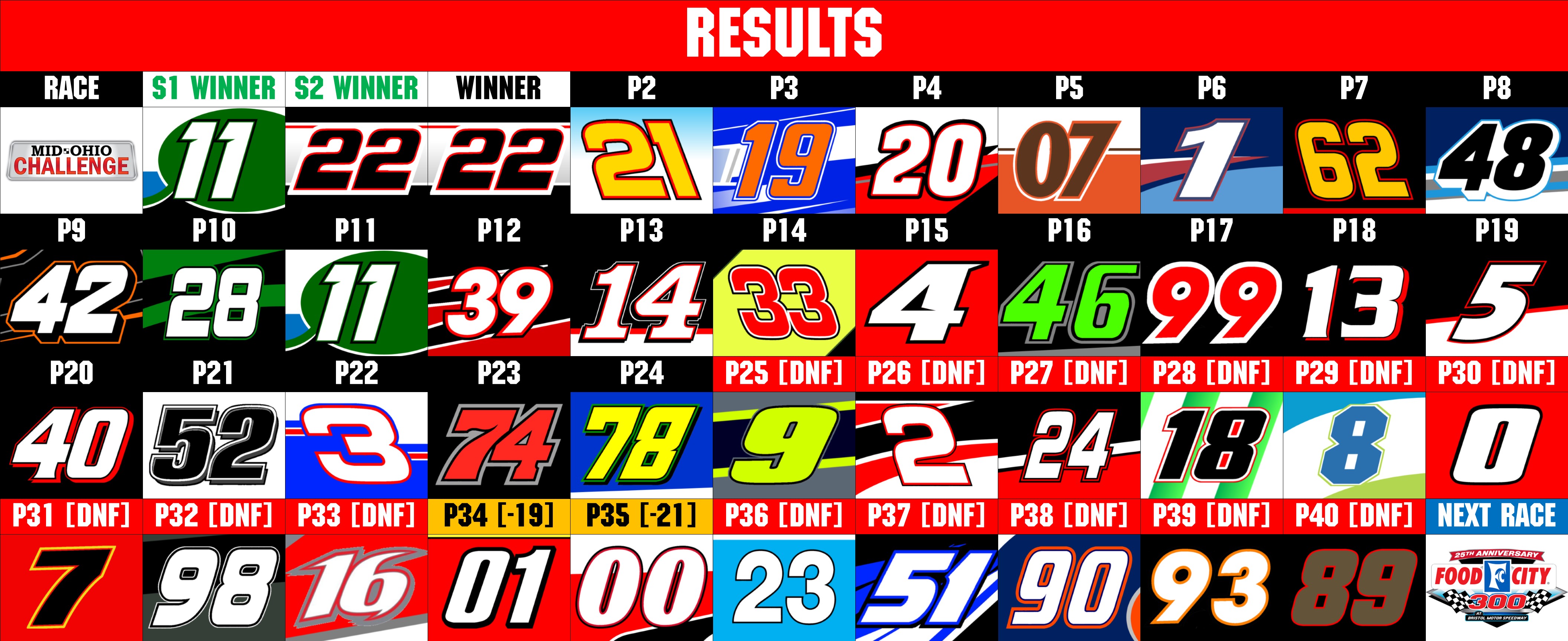 < PREVIOUS RACE (WATKINS GLEN) / NEXT RACE (BRISTOL 2) >
