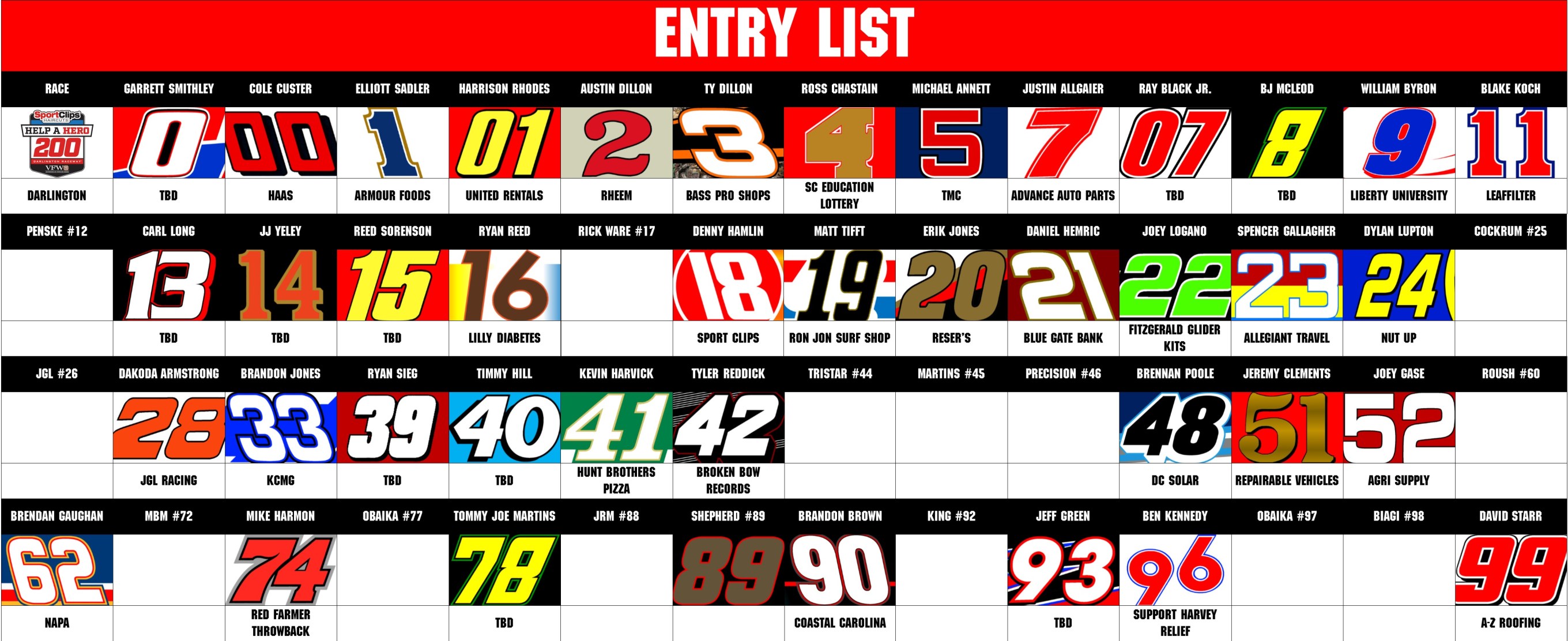 QUALIFYING – SAT: 12:05 PM [NBCSN] – DENNY HAMLIN