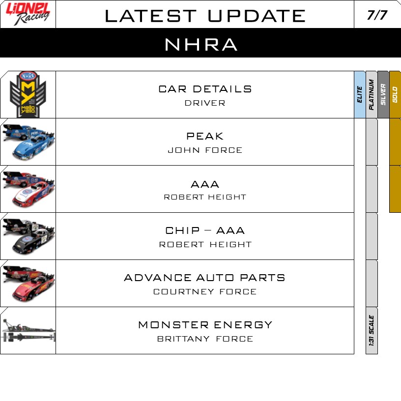 Source of information: LionelRacing.com