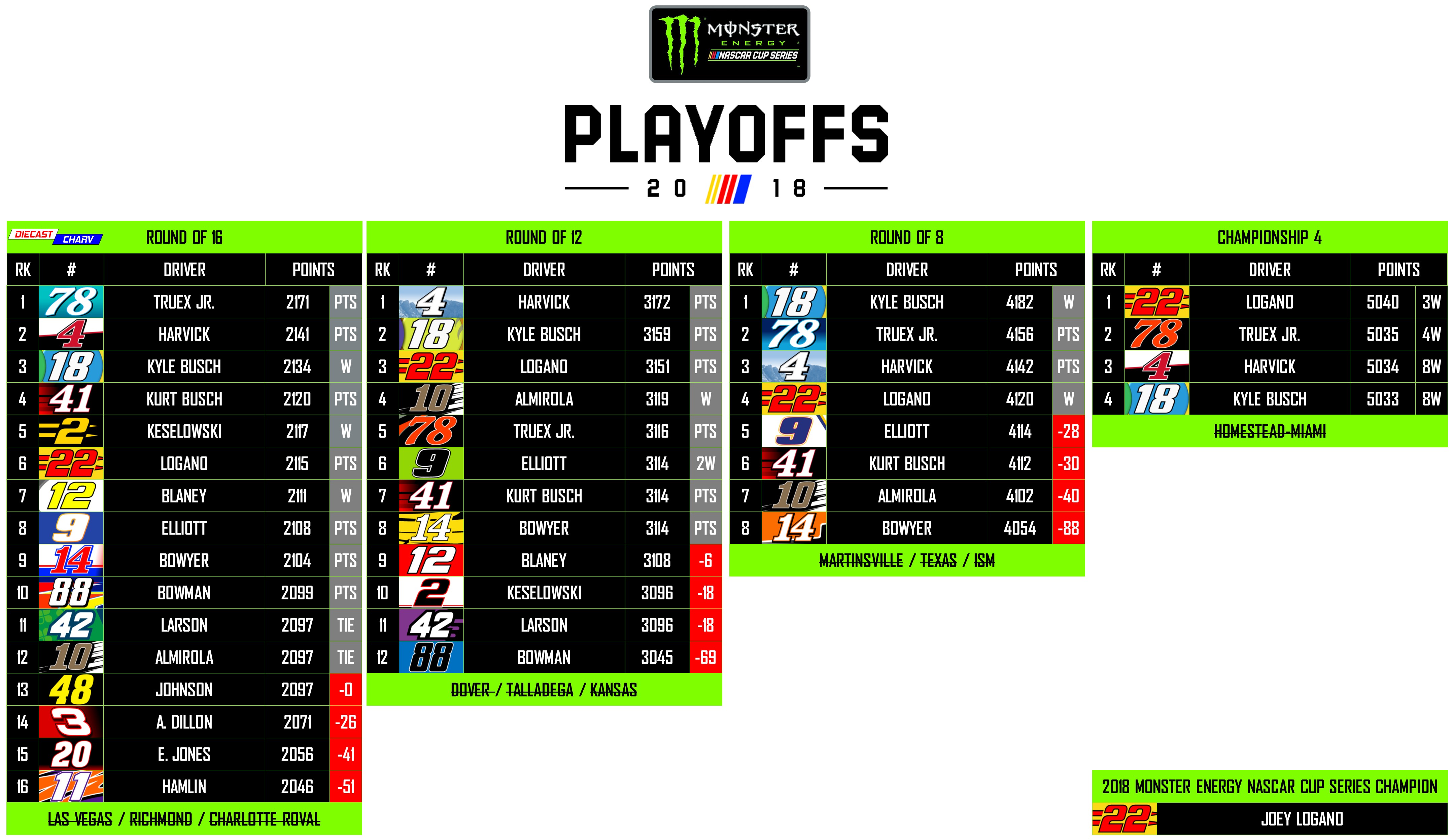 MONSTER ENERGY NASCAR CUP SERIES PLAYOFF GRID