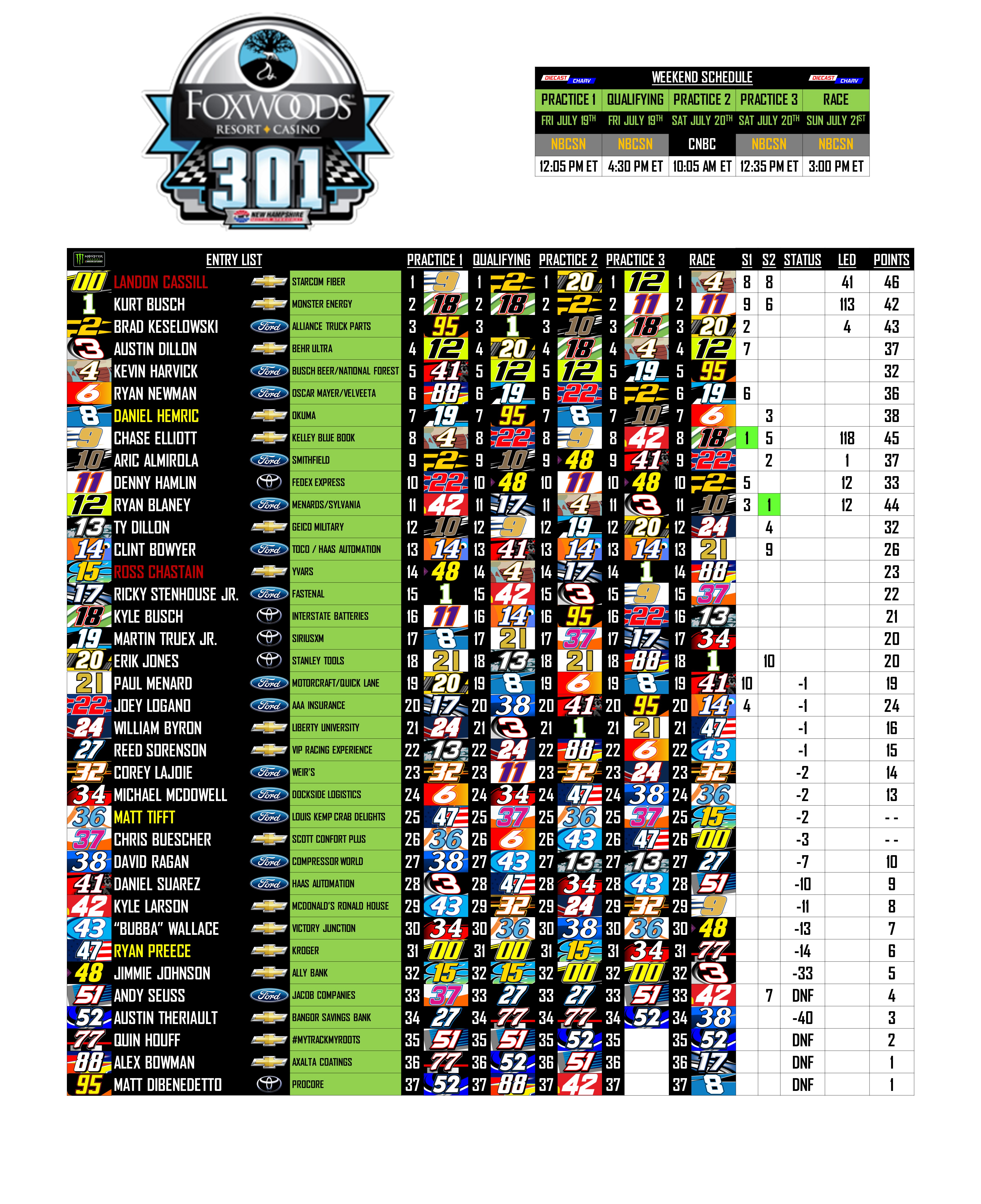 2019 FOXWOODS CASINO 301 VIEW RACE WEEKEND Share this: Click to share on X (Opens in new window) X Click to share on Facebook (Opens in new window) Facebook Click to share on Reddit (Opens in new window) Reddit Like Loading...