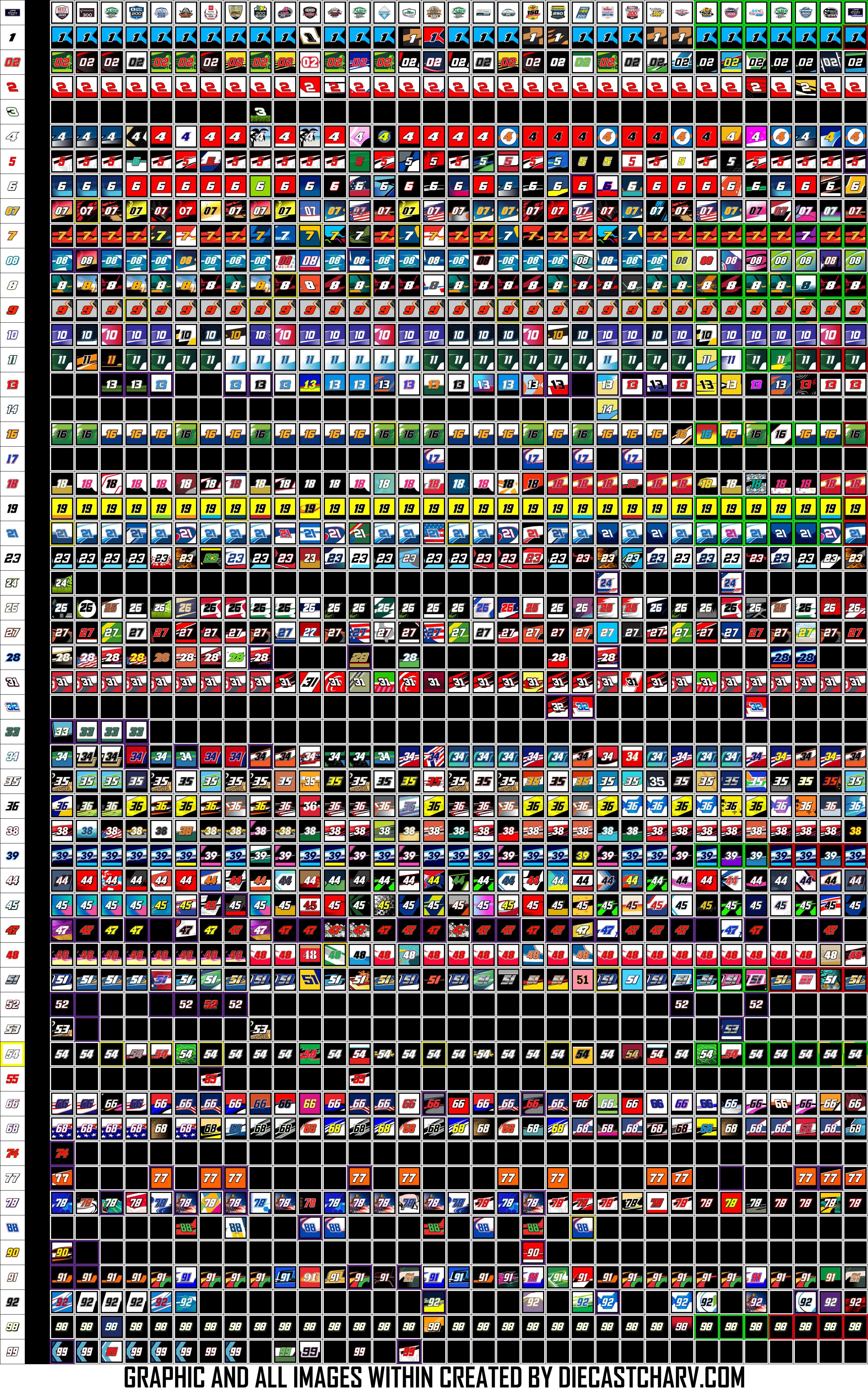 2022 NXS PAINT SCHEME CHART YELLOW BORDER: RACE / CHAMPION WINNERGREEN BORDER: PLAYOFF CONTENDERRED BORDER: ELIMINATED FROM PLAYOFFSPURPLE BORDER: DNQ Share this: Click to share on X (Opens in new window) X Click to share on Facebook (Opens in new window) Facebook Click to share on Reddit (Opens in new window) Reddit Like Loading...