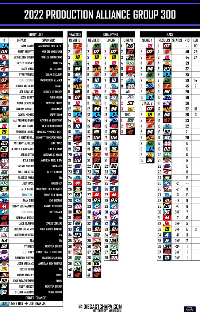 2022 PRODUCTION ALLIANCE GROUP 300 PRACTICE SATURDAY, FEBRUARY 2612:00PM ET ON FS120 MINUTES QUALIFYING SATURDAY, FEBRUARY 2612:30PM ET ON FS1SINGLE CAR LAPS RACE SATURDAY, FEBRUARY 265:00PM ET ON FS1150 LAPS Share this: Share on X (Opens in new window) X Share on Facebook (Opens in new window) Facebook Share on Reddit (Opens in new window) Reddit Like Loading...