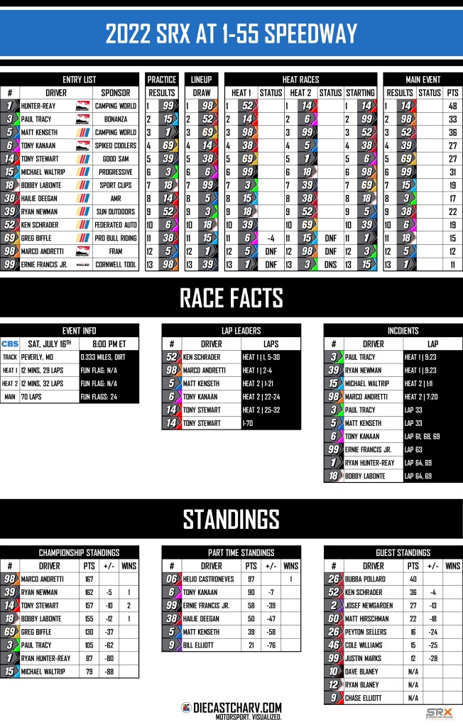 2022 SRX AT I-55 RACEWAY PRACTICE SATURDAY, JULY 163:00 PM – 4:00 PM ET RACE SATURDAY, JULY 168:00PM ET ON CBS Share this: Share on X (Opens in new window) X Share on Facebook (Opens in new window) Facebook Share on Reddit (Opens in new window) Reddit Like Loading...