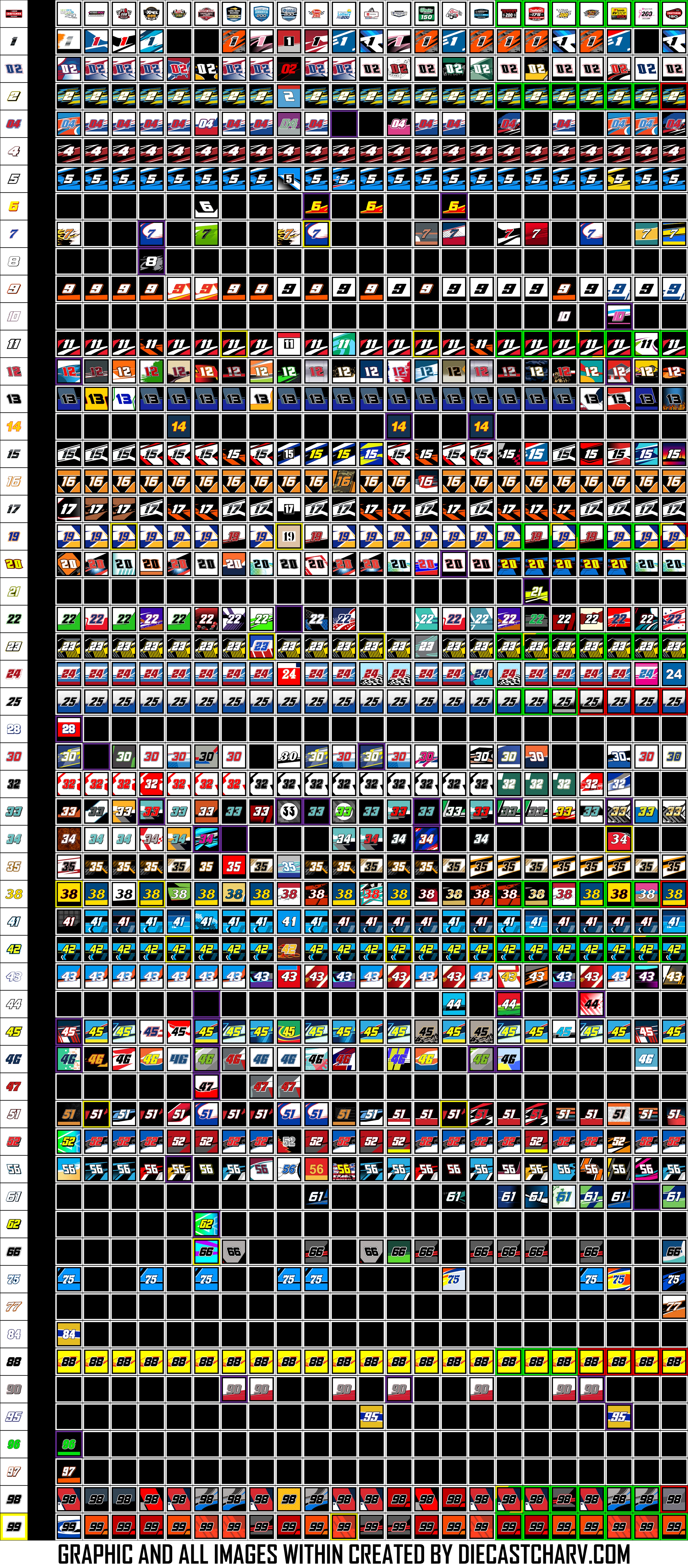 2023 NCTS PAINT SCHEME CHART YELLOW BORDER: WINNER / CHAMPIONGREEN BORDER: PLAYOFF ELIGIBLERED BORDER: ELIMINATED FROM PLAYOFFSPURPLE BORDER: WITHDREW / DNQ Share this: Share on X (Opens in new window) X Share on Facebook (Opens in new window) Facebook Share on Reddit (Opens in new window) Reddit Like Loading...