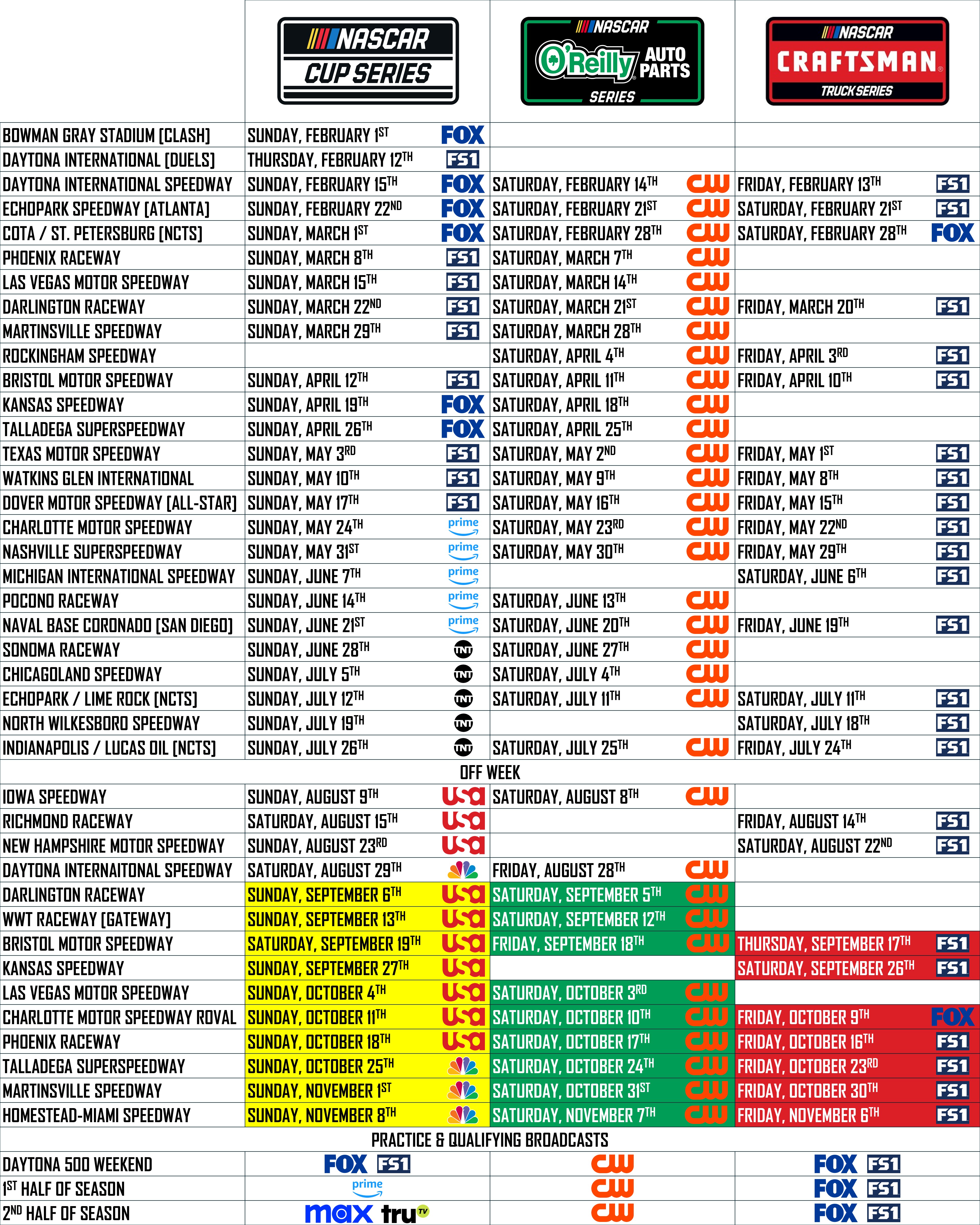 2026 NASCAR SCHEDULES Share this: Click to share on X (Opens in new window) X Click to share on Facebook (Opens in new window) Facebook Click to share on Reddit (Opens in new window) Reddit Like Loading...
